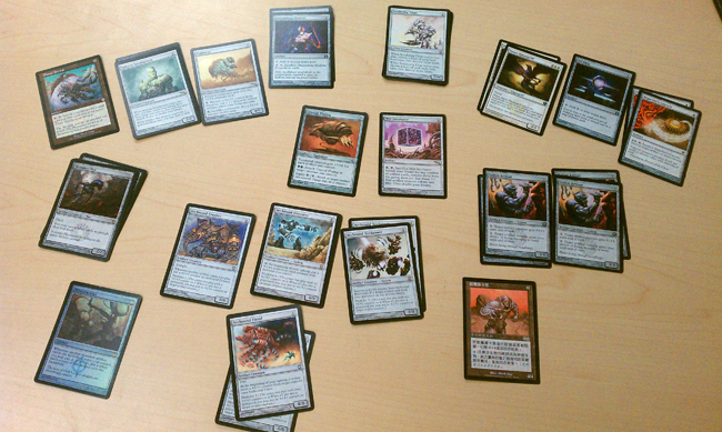 Finally, we have a few non-artifacts joining the fray. The only two cards in the deck that are neither artifacts nor lands are a pair of Razor Hippogriffs. I wanted the artifact Sanctum Gargoyles, but I was all out. Despite purchasing two boxes of Shards, I ran out during the project, so the Hippogriffs have to do. Returning artifacts is important, and they join Buried Ruin as a way to regather a spent resource. Finally, Eye of Ugin can tutor for a colorless creature. That includes twenty-three of the cards in the deck—a fine tutor for us indeed! I hope you can see the matrix aspect of this deck and its power. Here’s the ninety-ninth deck in our countdown: