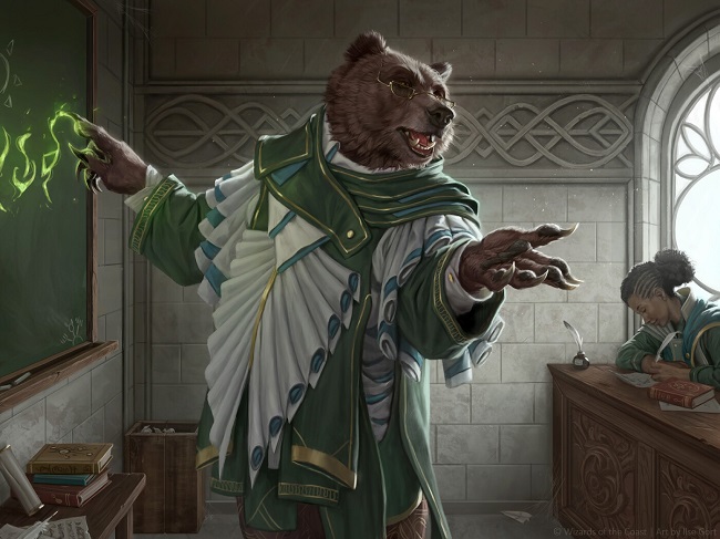 Look at this wonderfully delightful card! I love the idea of a Bear Professor! It's so fun! I love the delight of the glasses on the eyes and the Bear's Claw on the blackboard. It's just fun! I love the clothing on this cute delight! Wonderful! Delightful! Who crafted this piece of art? Ilse Gort did! With 21 total pieces Ilse's impact in the MTG player may be minor but it includes cards like Flourishing Fox; In Search of Greatness; Regal Leosaur and Teferi's Tutelage. Which card is your favorite?