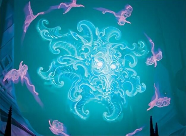 Our only mono-Blue card is this fun suspending sorcery that works well with magecraft triggers. I adore the art here, just adore it! Check it out! It has the awesome blue eldritch energy that is in the painting and the people are playing an awesome melody that inspires me. The instruments are made well and look gorgeous. From the lights to their hair there is a lot here to adore. Now you will adore it as well! Who created this piece? The popular artist Izzy did! Check out Izzy's other work here. There are an incredible 187 pieces here to also adore. I don't even know where to begin on a list that long! From Absorb to Zof Consumption there is a lot here to like!
