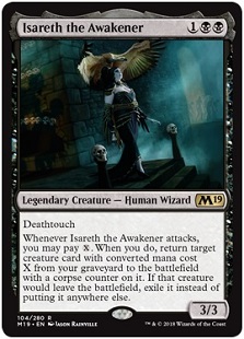 If you enjoy card advantage then Isareth is going to be your Awakener of choice. For three mana, you easily get a 3/3 body. She is on-curve. Now swing with Isareth. Spend some mana and return your best creature from your graveyard to play. You get a second helping of smashing or enters-the-battlefield triggers from your dorks. Now sure, they'll exile later, but they'll stick around for free until someone takes them out (or bounces them). Don't sleep on her deathtouch either. If you swing, someone has to decide if they want to block and trade with her. If they do, then you traded Isareth for one of their dorks and brought back a cool creature. That's the worst-case scenario and you still wound up ahead in the card advantage game. What if they decide they don't want to trade? Or what if Isareth is strong enough and early enough to smash out any defense they muster? Deathtouch answers a lot of combat tricks as well, like variants on Giant Growth. She's good!