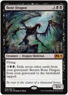 This Bone Dragon has it all. It's five mana to cast, and you get a 5/4 flying for your trouble, so that evasion and size for your investment. You can win the game with it just on its size and cost, without ever using the card for ill purposes.