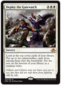 There’s not a lot here to be said. Planeswalkers are awesome. The chance to grab two and toss them into play for one card is great. You’ll usually hit one for sure, especially in decks that have a good number of them in the deck. Note that the flip-walkers from Magic Origins, like Liliana, Heretical Healer, are not planeswalkers on the side that mattes, so they can’t be Deployed. But that’s all right, I’m sure you’ll find a lot of other options to use and abuse.