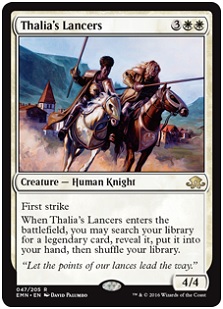 There are a lot of legendary creatures out there in casual land to fetch up. As a 4/4 first strike 5-drop with a solid body for the cost, this is not some cheap little small fry that plays well with others either. It’s pertinent in the red zone. It lets you swing for some stuff. And it’s got a great tutoring effect for the right legendary card (like Kor Haven or Gisela, the Broken Blade). You’ve got the power. And can you imagine how insane this thing must be eating a flicker diet? Wow!