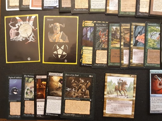 Let's zoom in on some of my reanimation stuff! As you can see, we have some re'arted Wheel of Fortune and Demonic Tutor in here. Our playgroup used to heavily modify cards and I inherited many of them after they got rid of their cards and I have them in here. Enjoy the duo!