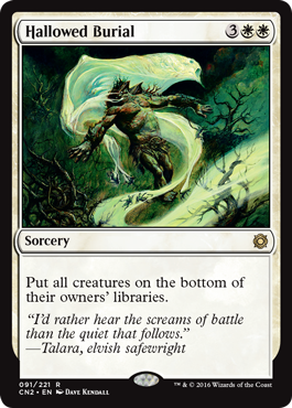 The original Terminus. Put all of the creatures back on the bottom of the library. Elegant. It works so well against most tricks. In these days of indestructible everything and junk that seeks to not be killed with various tricks and trinkets, it’s nice to have a simple, elegant, answer. All of the creatures are not coming back for a while barring a tutor, a shuffle effect, or a very long game. No graveyard shenanigans, no leaves-the-battlefield triggers, nothing. You are good to go, Idaho.