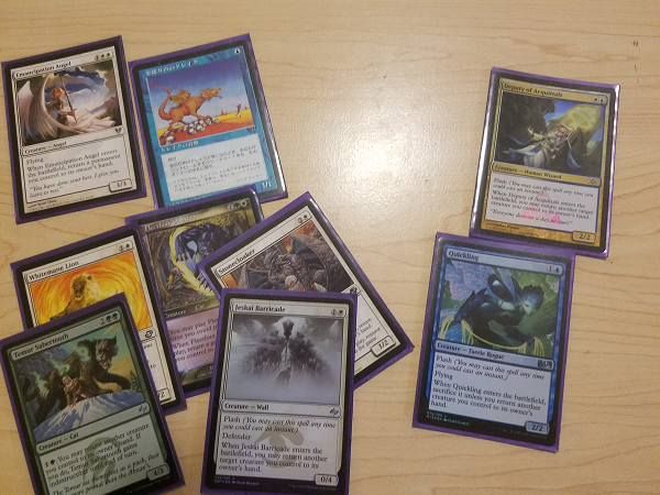 Cloudblazer is amazing, and an automatic addition. My deck runs Mulldrifter already. Cloudblazer is just so much better. It doesn’t use the evoke on Mulldrifter much, because I don’t want creatures in my graveyard. But the Mono-Blue aspect of it hurts. Cloudblazer has a lot of things to commend it. As a White creature, you can bounce it with Fleetfoot Panther. It can be pumped by Tolsimir Wolfblood and Wilt-Leaf Liege. Before today I had five Mono-Blue creatures — Quickling, Mulldrifter, Draining Whelk, Deadeye Navigator and Shrieking Drake. But moving away from some of those would be really helpful, because the deck becomes increasingly more synergetic.