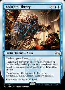 Check that thing out! The first thing I saw when I read the spoiler for Animate Library was about how awesome it would be combined with Battle of Wits as another enchantment-based win condition. And then the 2nd thought was about how great it’d be in Commander! And then my third thought was that it was really sad that every silver-bordered card has to be banned in Commander . . .