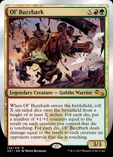 These two cards are great fun as leaders for a potential Commander deck. Ol' Buzzbark is a great card that evokes old school flavor. You’ll get a solid 3/3 for 2 mana if you don’t want to bother with X cost. And when you do, you can start dropping those mad dice onto the table, and they either pump your stuff or damage opposing stuff with equanimity. Hey, whatever happens, happens. Drop some dice and have some fun.