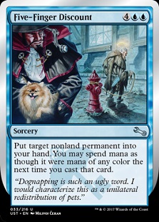 With the full spoiler out, you can see that there don’t seem to be any major snares. Cards that might otherwise have been broken have enough breaks on them to prevent issues. Teacher's Pet is a good example. You might have thought of this card in the same dominating board space as Stonehewer Giant that fetches an equipment into play repeatedly, but this Pet sacrifices itself when tossing out a Host or Augment creature. Even a crazy card like Five-Finger Discount, which lacks the key “you own” clause (thereby enabling to you to bounce another nonland to your own hand) is fun. The nastiest thing I can think of would be to try and bounce an opposing Commander to your hand, and not cast it. But zone-changing like this still lets something head to the Command Zone, so it won’t work. (See also Spy Eye, another in the, “Getting cards from other players into your hand mechanic.”).