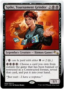 Therefore, Spike is twice banned in Commander, and even if Unstable were allowed, Spike wouldn’t be able to be played.