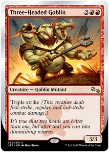 And you could choose Triple Strike from Three-Headed Goblin instead of double if your group allows a lot of silver-bordered options. Enjoy the power of Modular Monstrosity!