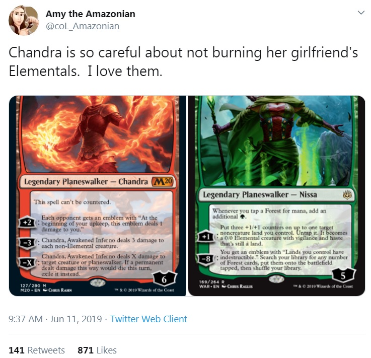 The relationship between Chandra and Nissa was the best part of the first War of the Spark novel. The story had issues, trying to do too much too fast, but at least one of the many plot points was making Gruulfriends official.