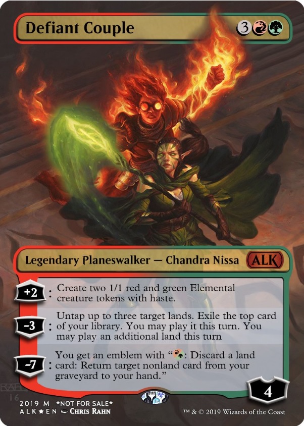 One great thing about Magic around the kitchen table or in casual multiplayer games is that you can decide how to play it. The only rule is to have fun. If you want to partner Chandra with Nissa, find friends who will enjoy that with you. Another wonderful thing is how making our own decks and playing with our cards allows us to tell our own stories. Begin with Once Upon a Time, and if you wish it, end with Chandra and Nissa together happily ever after.