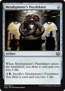 Aviary Mechanic provides another Kor Skyfisher with the upside of not requiring a tempo disadvantage. The cost of this is the absence of flying and a point of toughness. There are enough times when you want to commit a creature to the board without undoing a previous investment so I can see the Mechanic getting a few slots in decks looking to have things enter the battlefield over and over again. Cogworker’s Puzzleknot gets the nod by being two-thirds of Metalcraft on its own while also providing extra attackers in a pinch.