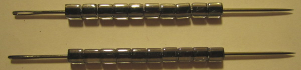 The needles I used on this card are 3″ Dritz sewing needles, labeled “Sculpture Doll Needles,” at the craft store. They’re not very expensive—a package of six is $2—and they are very sturdy.