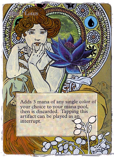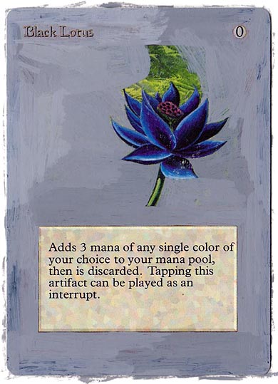 “Is there a card you’ve always wanted to do?” That’s the question Ben Lavender asked me a few weeks ago at the Star City Games Invitational in Indianapolis. As long as I have been altering cards, I have always wanted to paint a Black Lotus or a Mox. That was my answer. Sure, I’ve painted Force of Wills, an Imperial Seal, a Library of Alexandria, even a Timetwister. But a Lotus has always been missing from my achievements list.