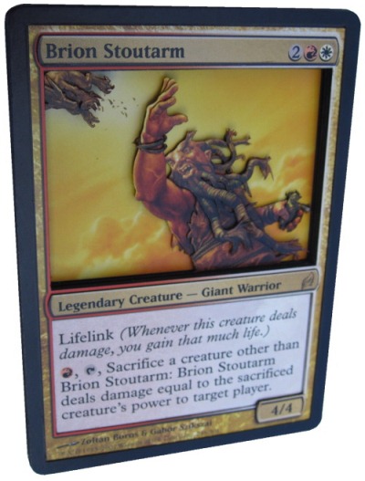 Recently, Debbie (wonderful editor, co-host of Avant-Card Show, creator of the Llanowar Sentinel) contacted me about making 3D cards for a couple of her co-hosts. Both of the cards chosen were ones that I had wanted to make for a while: Jenara, Asura of War and Brion Stoutarm. However, they also both were similar to Mangara in that most of the 3D would be in the main character since there is little else in the artwork of those cards.