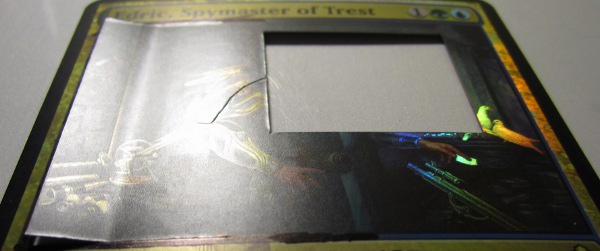 While that card looks amazing, Ohkubo mentioned that he didn't like working on foil cards because they are much harder to cut and manipulate. At the time, I didn't think much of it; I was only cutting Middle Earth cards, and they never made foils. Once I switched to Magic cards, however, the question was constant.