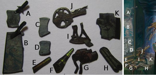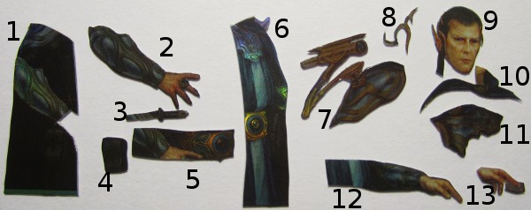 | 3) Dagger | 8) Earpiece | 12) Left Arm |