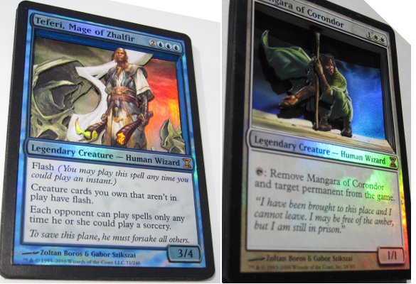 Initially, I went halfway, making partially foiled versions of a couple mono-colored Commanders.