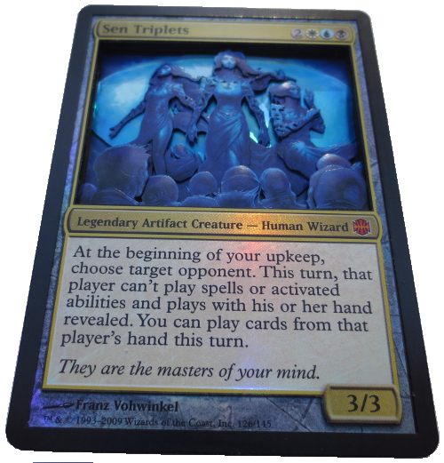 The Sen Triplets aren't the only trio of legendary ladies I plan on turning into a 3D card—the Sisters of Stone Death will be coming soon. Trostani, Selesnya's Voice and the Vendilion Clique are other trios that would also be fun to 3D, but they're a bit expensive for me to afford to destroy!