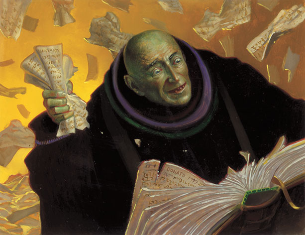 Where the artist applies to those appreciating the visuals of Magic, the writer applies to those who appreciate what is written for Magic. A writer Vorthos has a favorite piece of flavor text or a favorite card name. However, it is important to understand that the writer is not concerned so much with the storyline of Magic as he or she is with finding and appreciating good writing within the game. A writer Vorthos enjoys reading the new taglines put out for each set and appreciates the use of alliteration in names and flavor text. The writer keeps track of the one-word names used on cards and becomes upset if you ask him or her about some of the used-up ones. A writer loves to see real-world flavor text or hidden card-name Easter eggs. A writer is interested in the rare and obscure words found naming some of Magic’s thousands of cards. For the writer, he or she is a Vorthos by appreciating the written flavors of Magic.