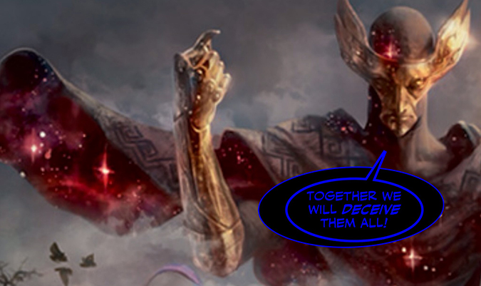 Back in Born of the Gods spoiler season, I was anxiously awaiting the God of Deception’s big reveal to the community. A fan of rogues, thieves, spies, and just about any blue and black cards in general, the legendary God of Deception sounded like the absolute perfect commander to me.