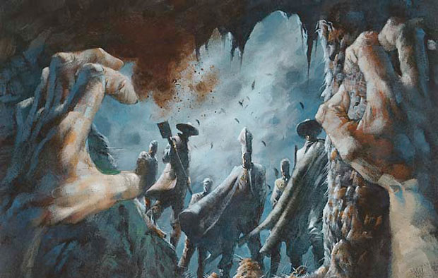 This quote ignited the dreamer within me and had me imagining the different interpretations of “first true dawn.” The word dawn has many different meanings, with its most literal being a reference to the fact that with the birth of Mirrodin’s fifth sun, a true dawn was possible with a sun of each color rising over the Glimmervoid. However, dawn also can mean “the beginning,” allowing the quote to be taken as a reference to the original storyline—that in raising the fifth sun, Glissa was able to vanquish Memnarch and release the plane from his tyrannical rule, allowing it to have its first true dawn—or beginning—as a free plane. We know now that Phyrexia had taken root on Mirrodin at an early stage, slowly growing within the planar core before taking over the plane in all-out war. Perhaps the quote is in reference to the fact that in the rising of the fifth sun, the green sun, Mirrodin’s last hope at defeating the Phyrexians was born. Green mana is the bane of artifice everywhere, so maybe the rising of the green-mana sun is seen as the beginning—or the dawning of the Mirrans’ last shred of hope.