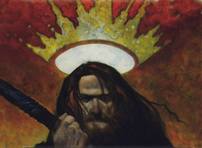 The art of the Modern Masters 2015 Edition card depicts a leonine of Theros realizing the gifts provided by the sun, creating a feeling that the target is experiencing for himself what Ajani has been preaching. The old art was equally impressive, with a composition that always reminded me of the stained-glass depictions of saints I would often gaze upon each Sunday growing up.