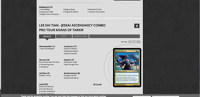 Wizards’s coverage repeatedly mentioned how his deck was different from the “other Jeskai Ascendency combo decks.” They never took the actual step of using the deck’s name as given by the designer and pilot. When Top 8 decklists were posted, this is what we, the international community of players, will see from the Wizards of the Coast website: