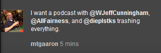 My quotes section will never be as good as Ted Knutson's (I also don't include any cheesecake, so meh) as the purpose of this section, for me, is to give some images or tidbits of conversation that I find amusing and/or funny. Some of them tend to be inside jokes, but if this section really bothers you, skip it or pretend it's not here. It's also short since I accidentally deleted the folder where I was collecting them . . . sad face!