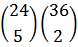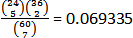 The first number (“24 choose 5”) is the number of combinations of five items from a group of twenty-four, which is then multiplied by the number of combinations containing two items from a group of thirty-six. This represents the number of hands with exactly five lands in them.