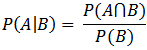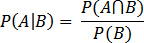 P(A|B) – This is known as a conditional probability, and it is the probability of event A given that event B occurs and is defined as: