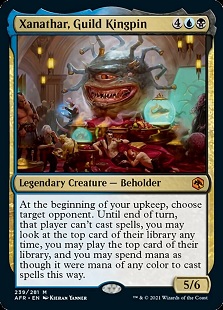I'm a sucker for a Sen Triplets. For the same mana cost, we can add Xanathar to the mix. While I don't think this is quite a Sen Triplets, anything that has you choose an opponent usually leads to good things. With Xanathar you get to lock out an opponent while also scamming the top of their deck. There's nothing revolutionary about Xanathar, but it's a fun flavor card and I'm in for anything that lets me play lands from my opponents.