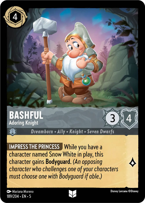 Snow White - Fair-Hearted - Finally a Knight that knows how to use other Knights. 3 Lore gain for 5 ink is a good ratio for Steel. Plus, with the right pals she can stay on the field for plenty of time. If you build the Knight deck, 4 Snow White is a must.