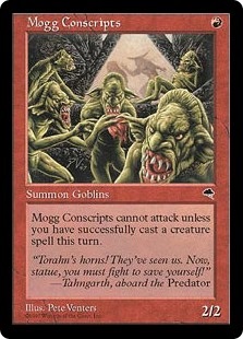 , Mogg Conscripts was a heck of a lot easier to build around than Ice Age's Orcish Conscripts, a card which itself got a power upgrade in Stronghold's Mogg Flunkies.