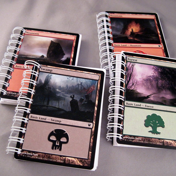 MTG mini notebooks from Stalking Marla are eco-conscious and cute—bummer you can’t choose exactly what cards you want, but you can specify a land color.