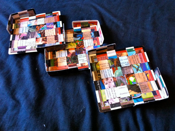 And as a complement to the coasters or as a standalone coffee-table catch-all, these MTG woven baskets by prettysmartstuff are super-cute and eco-friendly.
