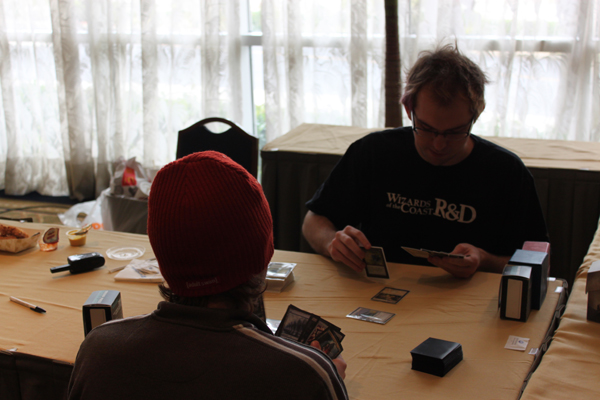 Fortunately, actual time spent outside in the daylight was at a minimum . Grands Prix are like that: between the massive crowd, matches to watch, events to join, dealers to scout, traders to test, artists to visit, gunslingers to combat, and general good times to be had with friends, you usually find something interesting.