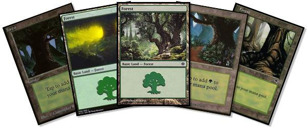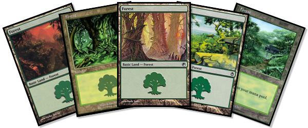 In an effort to bring the story to different locales, the basic lands sometimes undergo radical change. Traditional pines and firs may be swapped for bamboo, kapoks, or even stranger types of flora not native to planet earth.