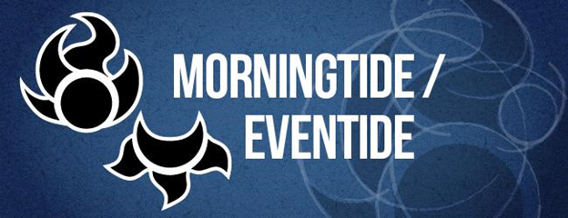 For the most part, we are seeing true icons. These are simplified vectors that are still recognizable for concrete images while conforming to a square aspect ratio. The geometry is immediately apparent and pleasing to the eye, reducing cleanly to fit any need. The symbols also begin to reference one another within a block, and not just in style. The dualistic nature of Morningtide and its dark counterpart Eventide are clearly linked and interrelated by their icon designs.