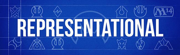 The most recent Magic icons are a curious mix of progression and nostalgia. Over twenty years since that first sword of the Arabian Nights, we see the return of concrete symbolism. The recently completed Khans of Tarkir block contained direct references to the core imagery with its crossed swords and dragon heads. The Return to Ravnica block demonstrated a bit of cleverness in its construction by allowing the symbols from the first two sets to combine in their entirety to form the third (a trick repeated in the following Theros block). Even the core sets between 2010 and 2015 became rather overt: This is Magic, and this is what year it is.