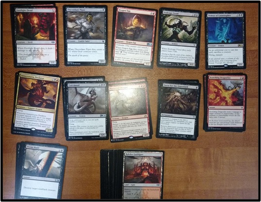Cyrus' brother Julien had one of the most interesting requests for me. He's one of those players who's all about the aesthetic of the game. He wanted something cool, and to him, the coolest concept he could think of was, "a Dragon and Demon deck!" Short of building something around Malfegor, I wasn't sure what I could do with such a theme that would still work with a play style that was more than just play on-theme creatures and turn them sideways. I'm actually pretty proud of what we ended up with in the end, though.