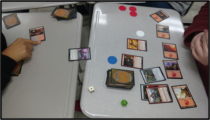 Conner is yet another student who found his way to our club through word of mouth. It's clear to me that he's played the game before, but I have yet to see him play anything other than a borrowed deck. It's common for him to come during our lunch breaks to play a game or two with the other kids, usually playing one of the decks I've completed but have yet to give to a student. This Mono-Red artifact list seems to be his favorite so far. I can almost certainly say that he's played it more than anyone else, so it may as well be his at this point!
