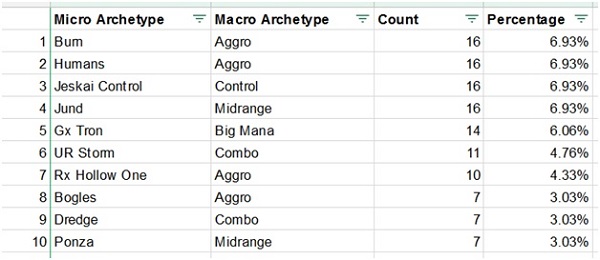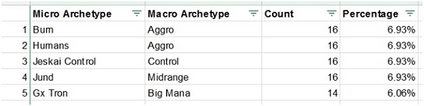 Most importantly none of these best performing archetypes has anywhere close to an overbearing representation of top finishes. The format at a glance appears to be more diverse than ever.