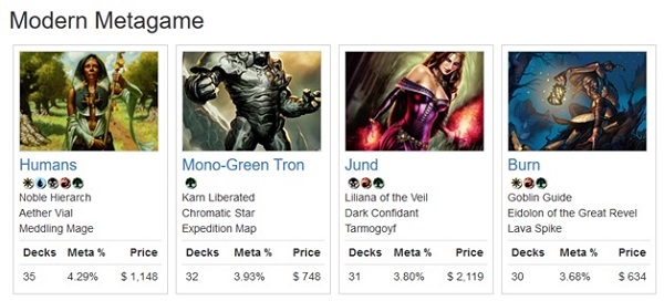 This intentional skewing makes Modern metagame samples you see posted on sites like MTGGoldfish and MTGTop8 useless for determining if the successful decks in a format are diverse at a glance.