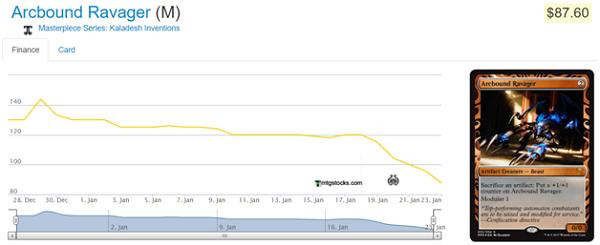 This picture really doesn’t tell the whole story as it hasn’t been updated today but you can buy Arcbound Ravager masterpieces for as little as $70 now. But this could be an outlier, right? Not really.