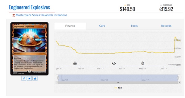Chalice of the Void and Engineered Explosives have been targeted by buyouts because of their low supply and really haven’t started to recover. While I don’t condone buying cards out, this isn’t likely to throw organic demand off by a lot. Aether Revolt was not opened enough, as we can see by the price of Fatal Push. There are just not a ton of these cards in the cases and inventories of stores. We’ve been opening Amonkhet for the last 3 months and at this point there is unlikely to really be any more supply. From here I would not be surprised if more of the Aether Revolt Masterpieces started to jump. I would keep a close eye on Arcbound Ravager, Extraplanar Lens, Oblivion Stone, Paradox Engine, Pithing Needle, Planar Bridge, Staff of Domination, and Wurmcoil Engine if you’re intending to collect any of them. Those I think are the closest to seeing large price corrections.