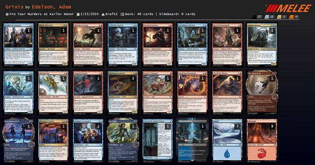 I'd go on to draft a mediocre Black/Blue control deck and go 1-2 in the first pod, which is about in line with what usually happens to Black decks in Murders at Karlov Manor draft. Not to say that Black is unplayable (I did 3-0 the second draft with a White/Black deck), but it is definitely not where you want to be.