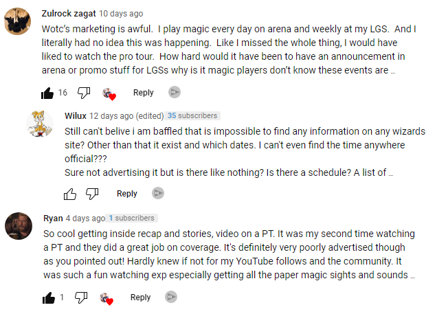 If a large part of your base doesn't know that your big event is happening, and they would be in the potential audience for that event, you're doing something very wrong. The Pro Tour is a huge production, which makes skimping on informing the community and creating excitement a major blunder.